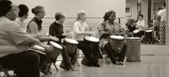 I respectfully teach beginning West African drumming.  I am honored to share this aspect of drumming with many who may otherwise have no opportunity to experience it.